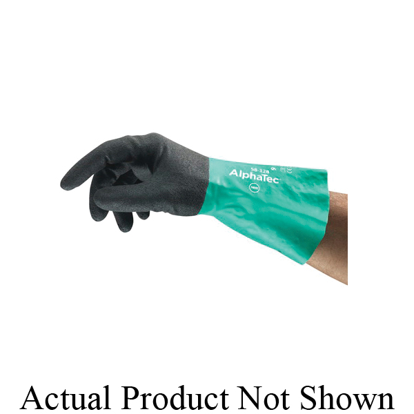 AlphaTec 58128090 58-128 Anti-Static Latex-Free Light Duty Powder-Free Silicone-Free Chemical-Resistant Gloves, SZ 9/L, Right/Left Hand, Nitrile, Gray/Green/White, Polyamide Yarn/Cotton Lining, 12-1/2 in L, Supported Support, Straight Cuff, 7 mil THK