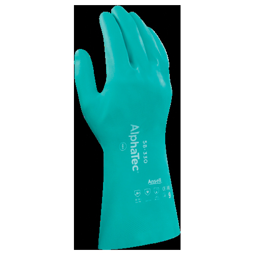 AlphaTec 284970 58-330 Chemical-Resistant Gloves, SZ 7, Ambidextrous Hand, Nitrile, Sea Green, Aquadri 2 Lining, 12 in L, Resists: Chemical, Unsupported Support, Gauntlet Cuff, 26 mil THK