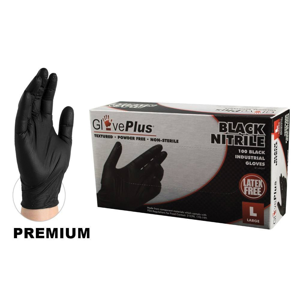 Ammex GPNB46100 GlovePlus Industrial Grade Disposable Gloves, L, Nitrile, Black, 9-1/2 in L, Non-Powdered