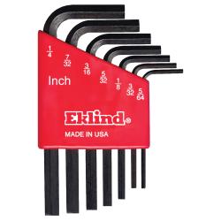 Eklind 10107 Hex-L Short Key Set, 7 Pieces, 5/64 to 1/4 in Hex, L-Handle Handle, Alloy Steel, Black Oxide