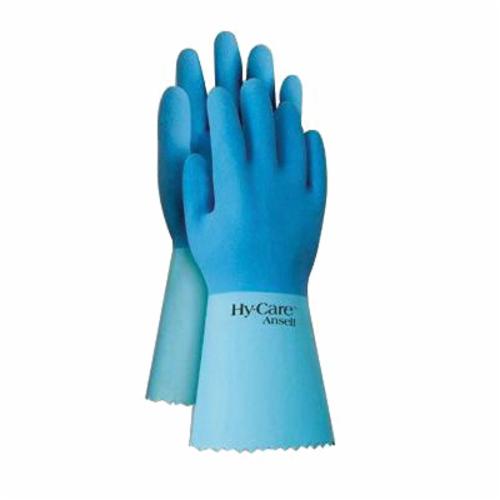 Hy-Care 285654 62-400 Fully Coated Chemical-Resistant Gloves, SZ 10, Natural Rubber Latex, Blue, Knit Wrist Lining, 12 in L, Resists: Alcohol, Caustic, Chemical and Oil, Pinked Cuff