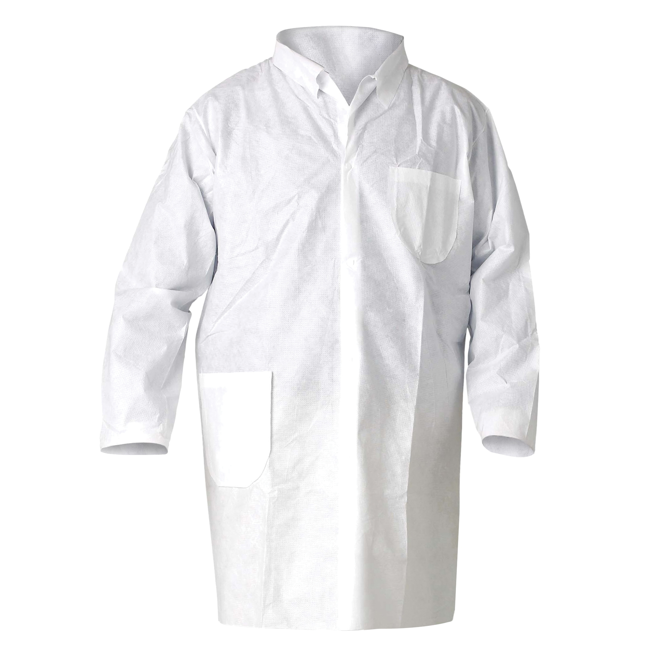 KleenGuard 10029 A20 Breathable Lab Coat, Unisex, L, White, MICROFORCE* Barrier SMS Fabric, Snap Front Closure, 2 Pockets, TAA Complaint, NFPA 99