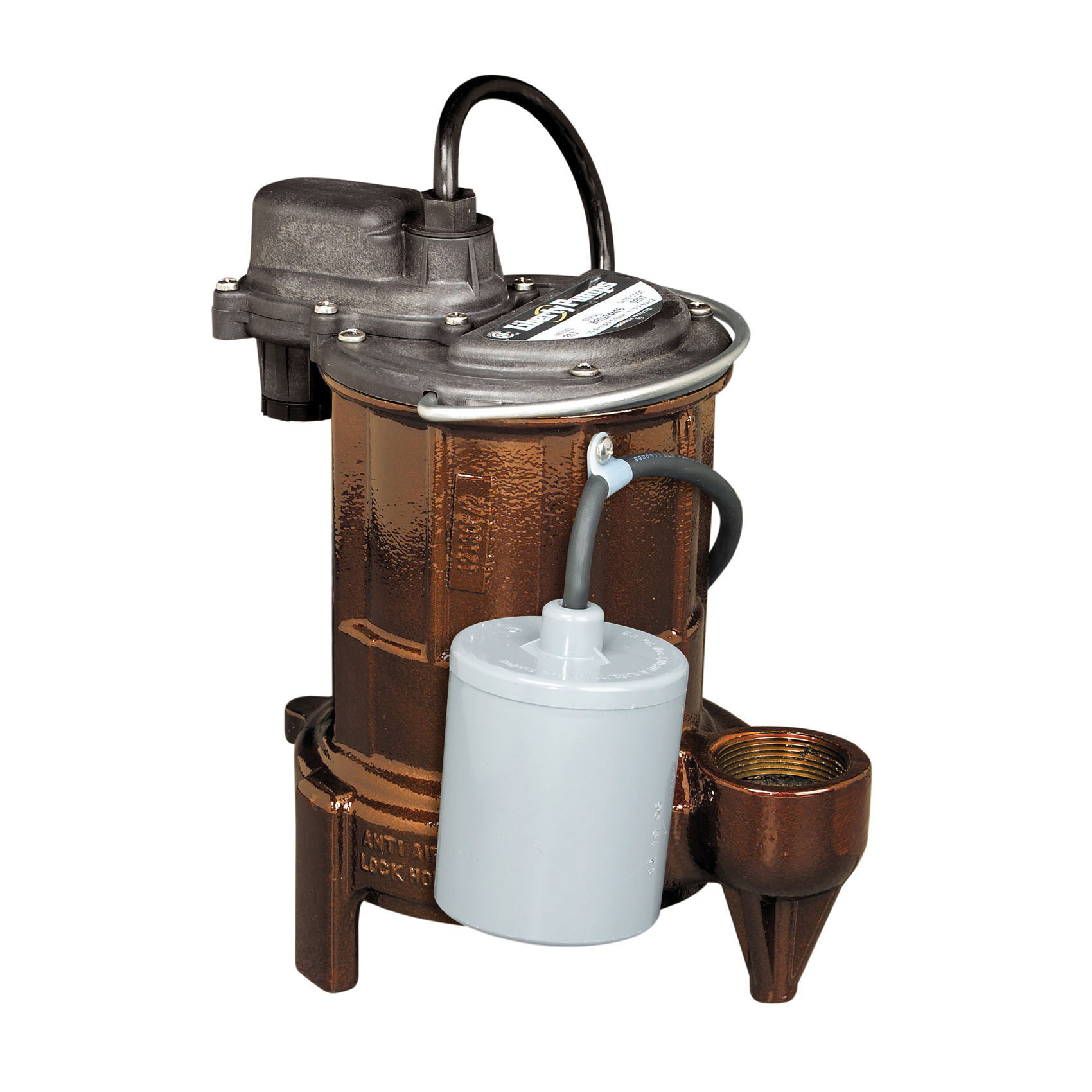 Liberty Pumps LE51A Submersible Sewage Pump With Wide Angle Float, 1/2 hp, 115 VAC, 2 in FNPT Outlet, Cast Iron, 12 A Full Load/22.5 A Locked Rotor, 1 ph