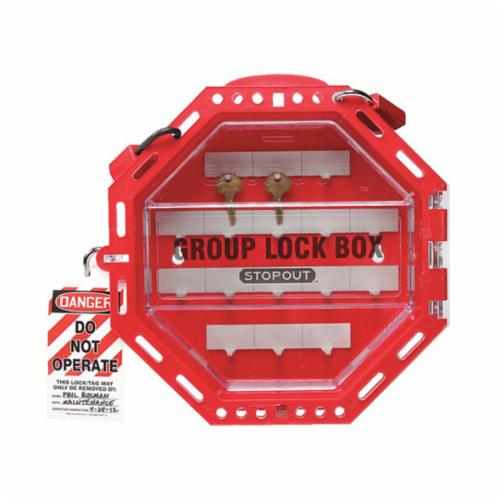 STOPOUT KCC620 Look n Stop Compact Group Lockout Box, 17 Padlocks, Twist Door, Red, 7-3/4 in H x 7-3/4 in W x 4 in D, Wall Mount