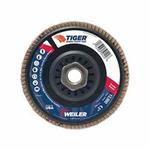 Saber Tooth 50130 High Density Premium Coated Abrasive Flap Disc, 4-1/2 in Dia Disc, 7/8 in Center Hole, 40 Grit, Coarse Grade, Ceramic Alumina Abrasive, Type 27/Flat Disc