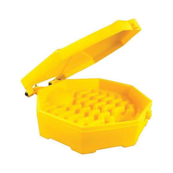UltraTech 0499 Ultra-Global Funnel Open-Design Funnel With Hinged Cover, For Use With 55 gal Tight Head Steel/Poly Drum and 3/4 in Bung, Polyethylene, Yellow