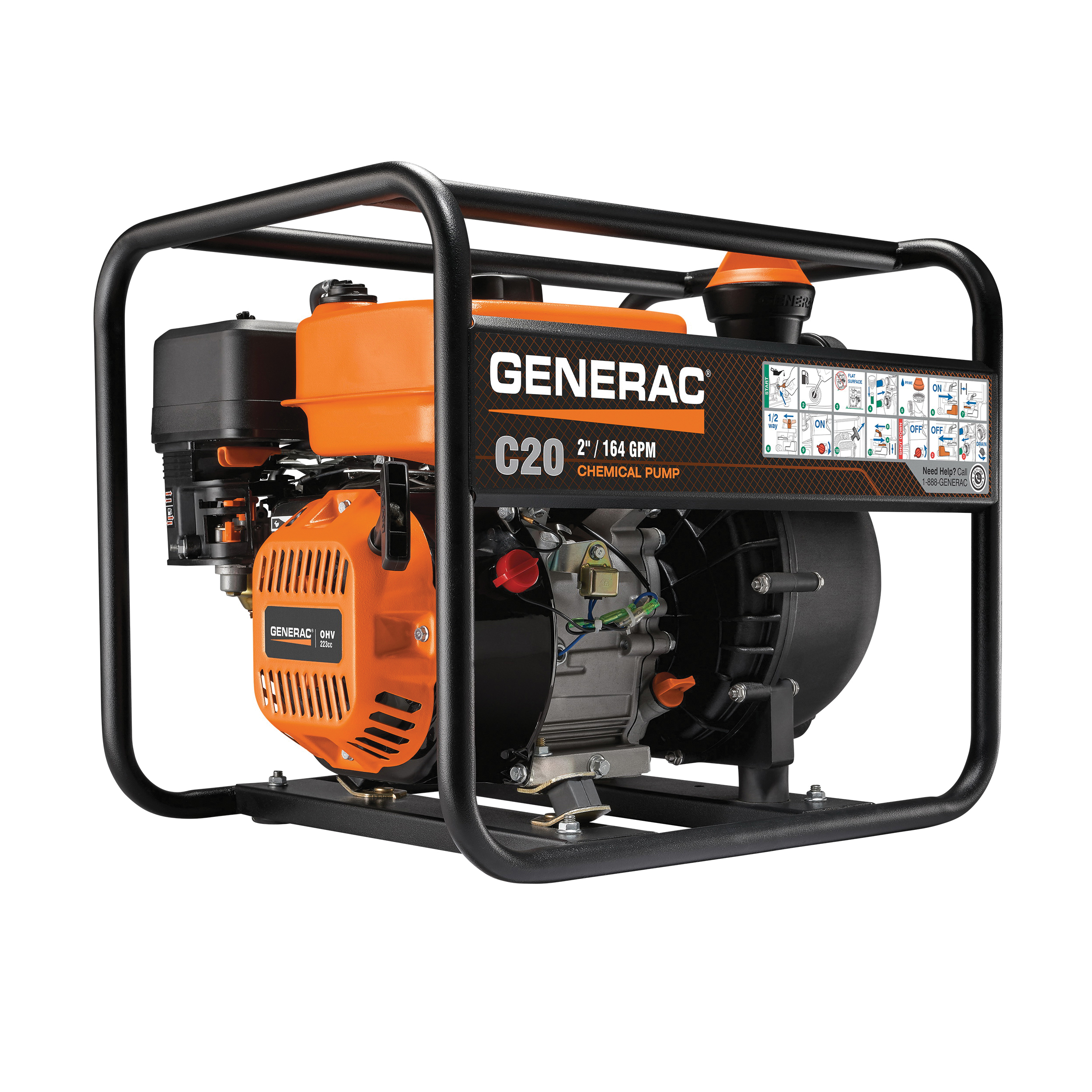 Generac 7126 C20 Chemical Water Pump, 223 cc 4 Cycle OHV Engine, 164 gpm Flow Rate, 2 in NPT Inlet x 2 in NPT Outlet, 149 ft Max Head