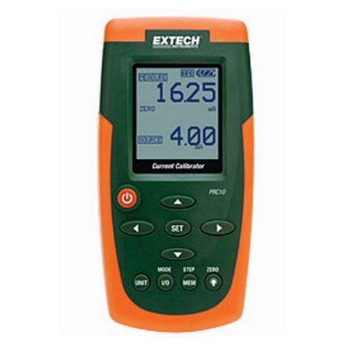 Extech PRC10 Current Calibrator/Meter, 20 VDC Measure, 0 to 24 mA DC Source/0 to 50 mA DC Measure, Dot Matrix LCD Display, (6) AA Batteries, AC Adapter, 1000 Ohm at 24 mA Source